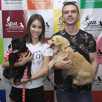 Nathalia Castelli e o namorado Pedro Pedin na ação do Spa Animal em prol do S.O.S. Animais